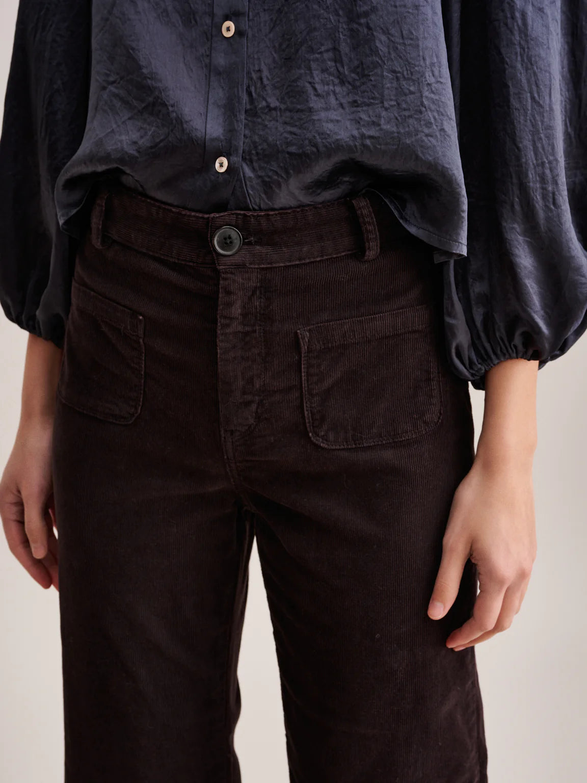A contemporary blend of '70s styling and comfort, these micro-rib corduroy pants boast a high rise and wide leg profile with patch pockets. Crafted from cotton-blend fabric with a touch of stretch for flexibility, these tailored trousers are designed for all-day comfort and a variety of looks.