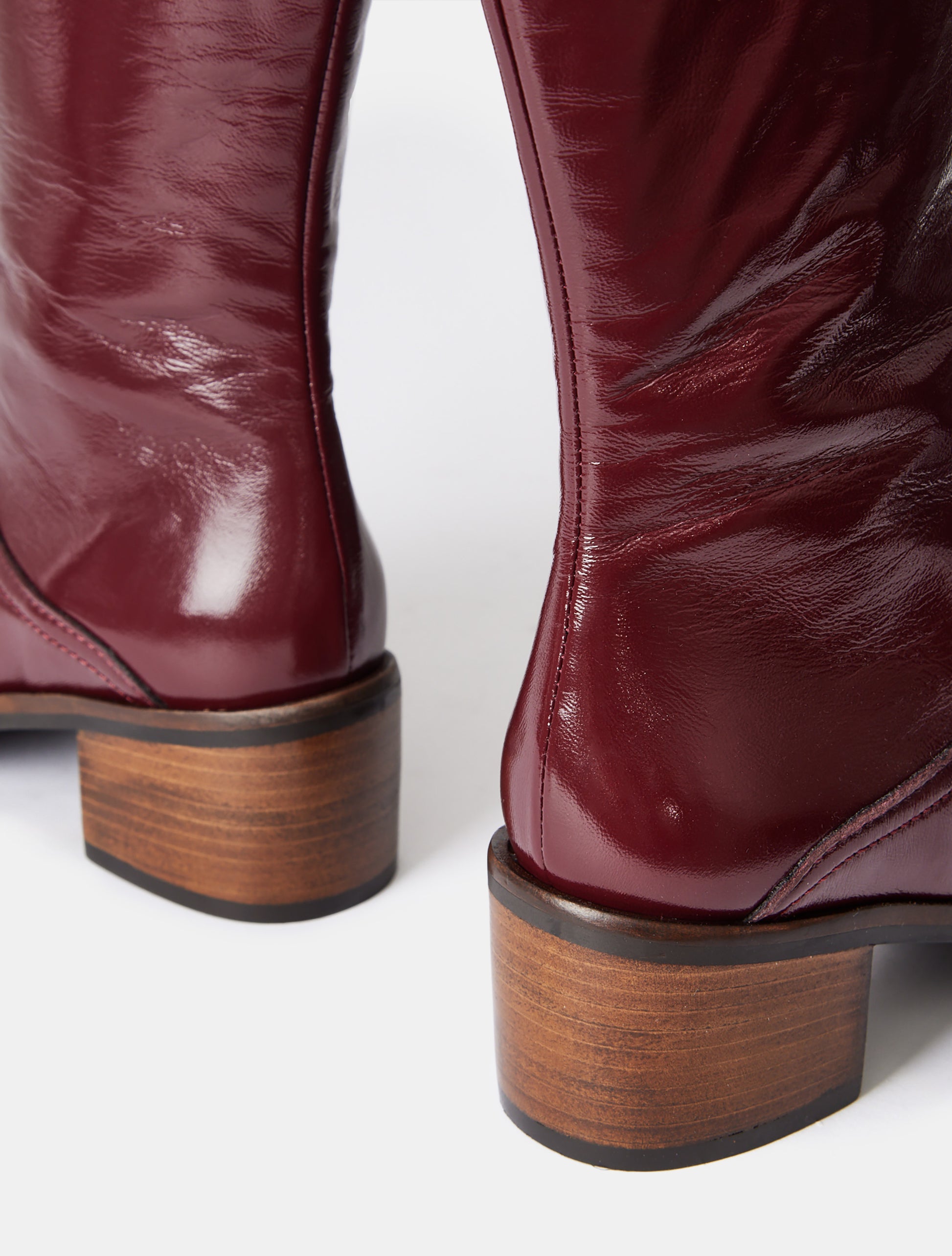 With a sturdy wooden block heel, these boots offer comfortable elevation, making them perfect for all-day wear. The leather sole enhances durability and grip, while the smooth leather lining ensures a comfortable fit. These boots are available in two rich color options: classic black for a refined look or deep burgundy for a bold, fashionable statement.