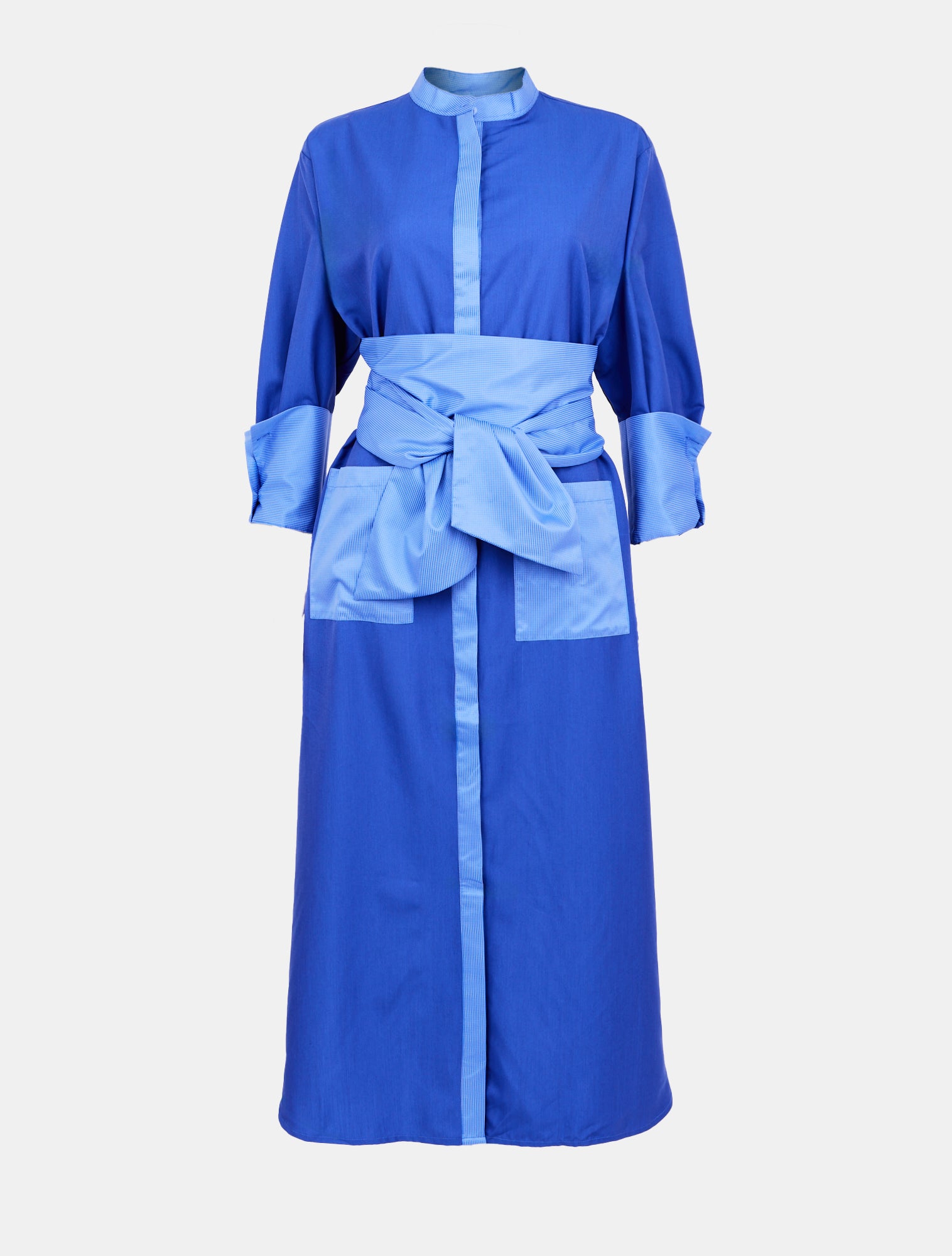 Elevate your wardrobe with the Colibri long shirt dress. This dress boasts a modern silhouette and a bold color-blocked design. The removable belt adds versatility, allowing for a tailored or relaxed look. Versatile for any occasion, this dress is a must-have for any fashion-forward individual.