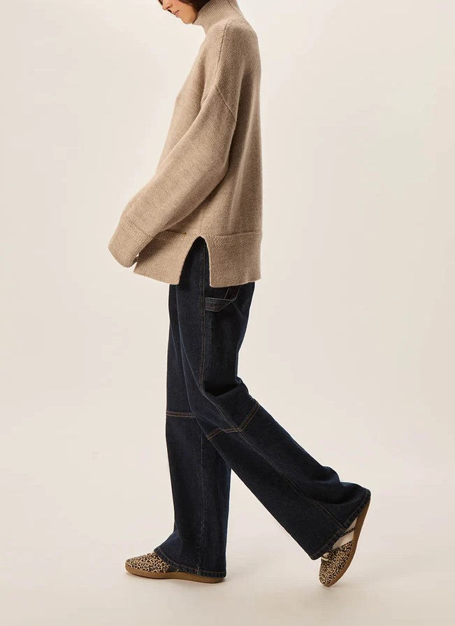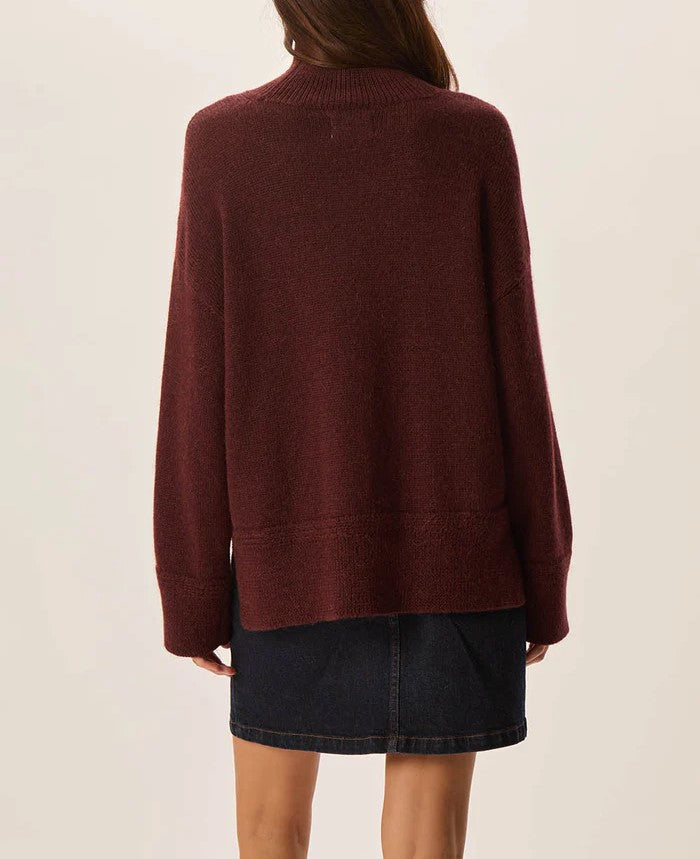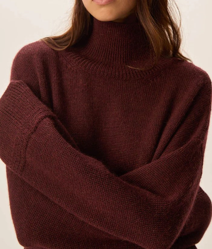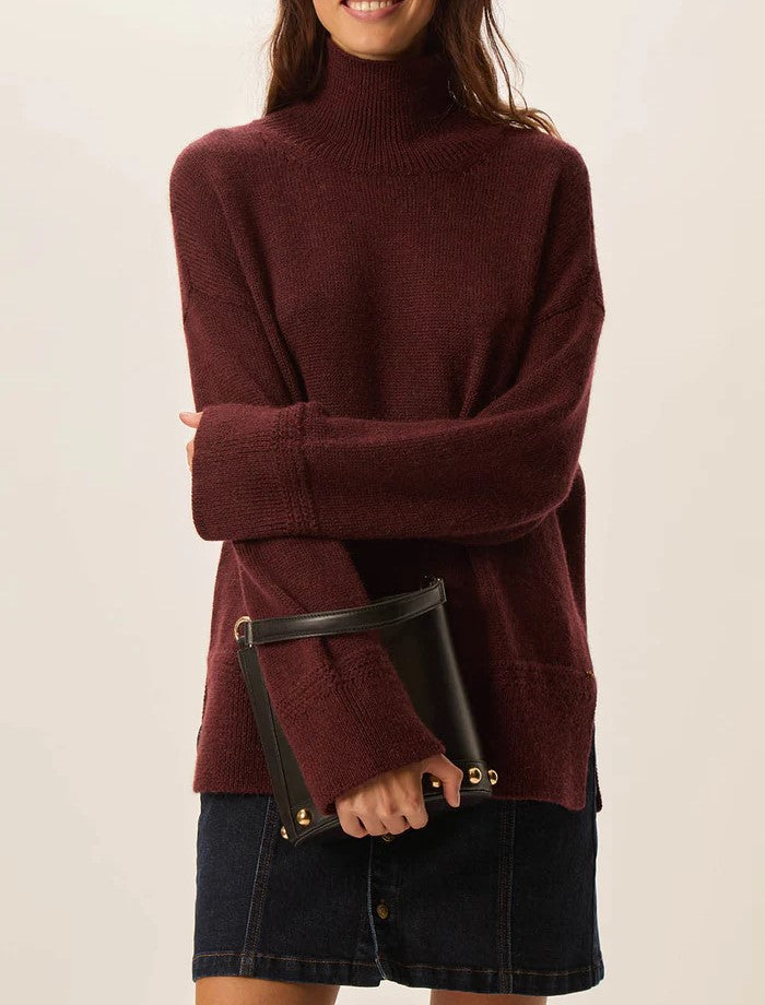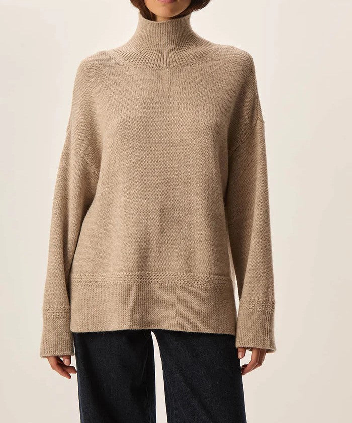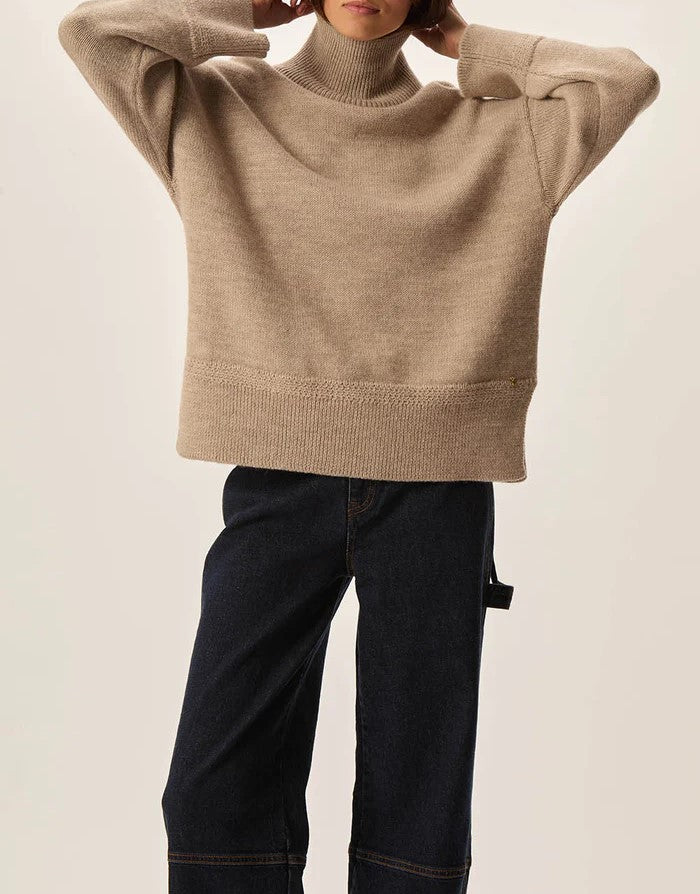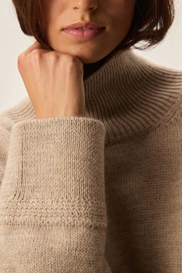 With its high collar, textured knit, and relaxed silhouette, the Barette Sweater is designed for easy elegance all season long. Crafted in a soft merino wool and baby alpaca blend, it layers beautifully with skirts, jeans, or tailored pants—your go-to knit for casual chic dressing.