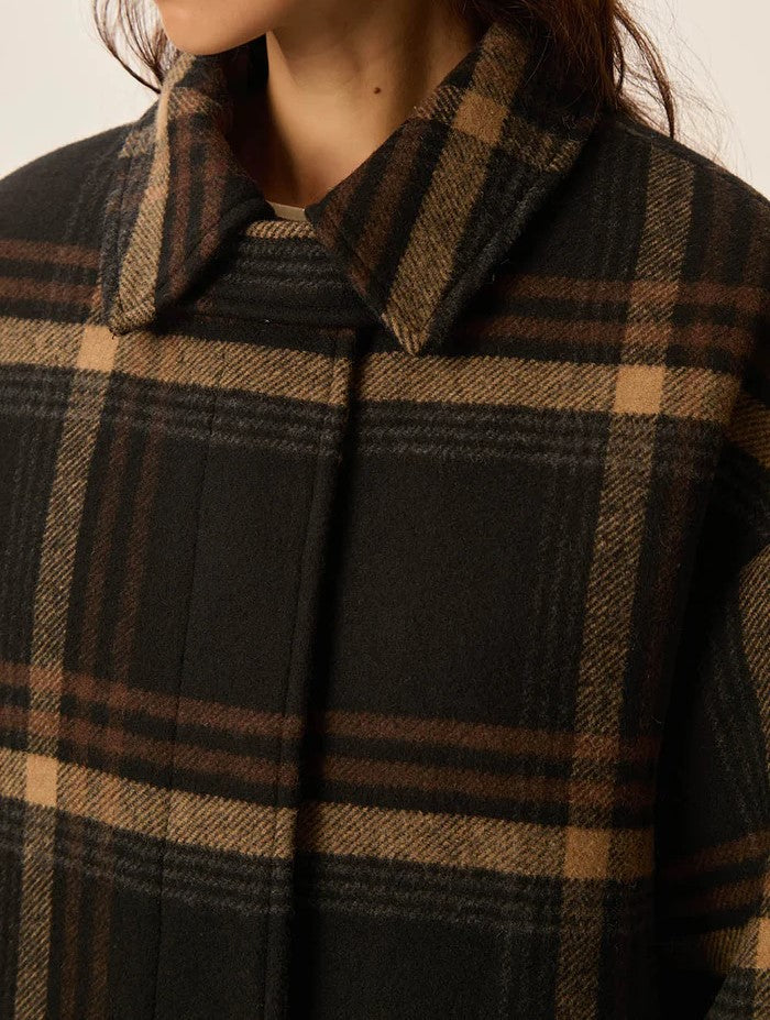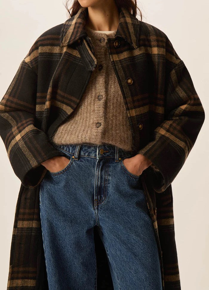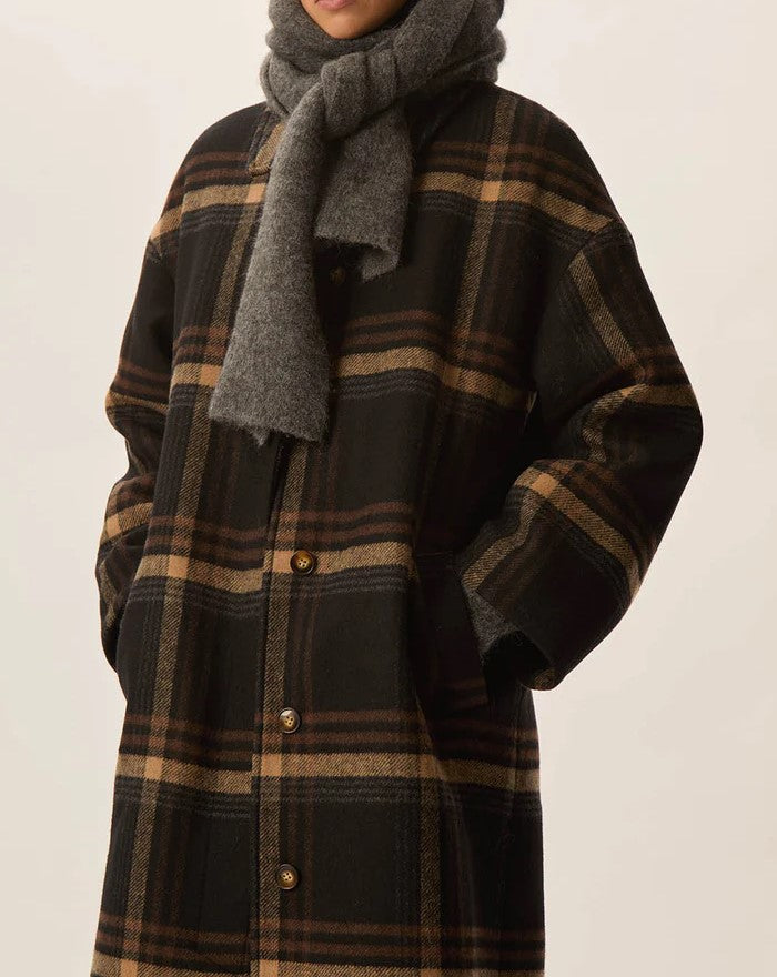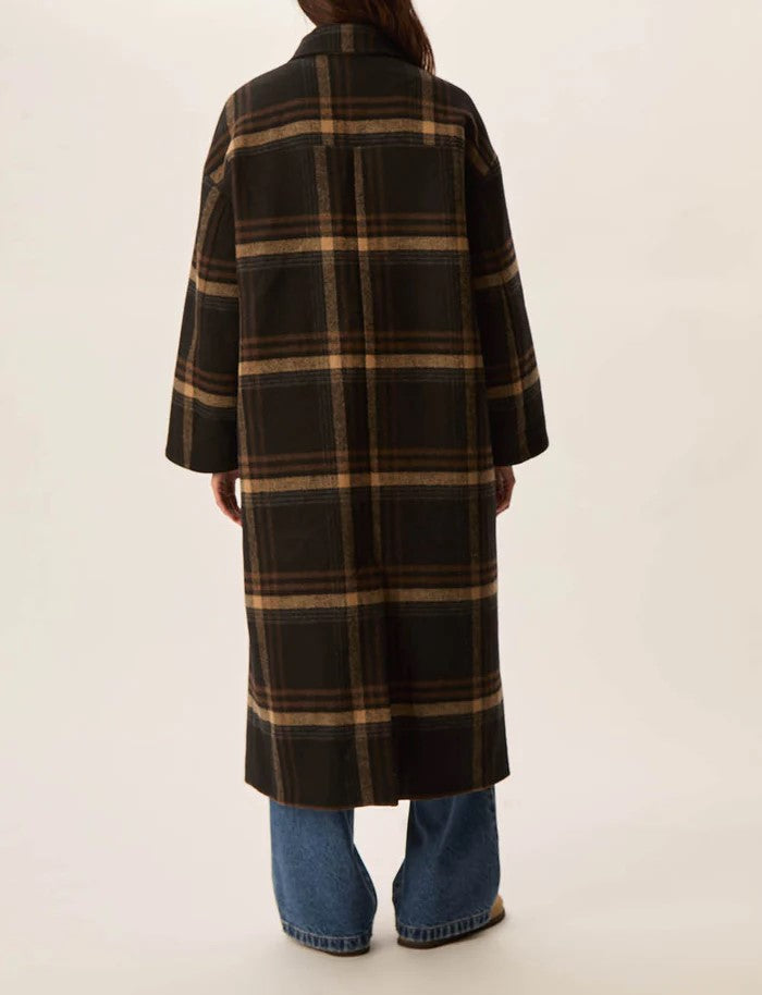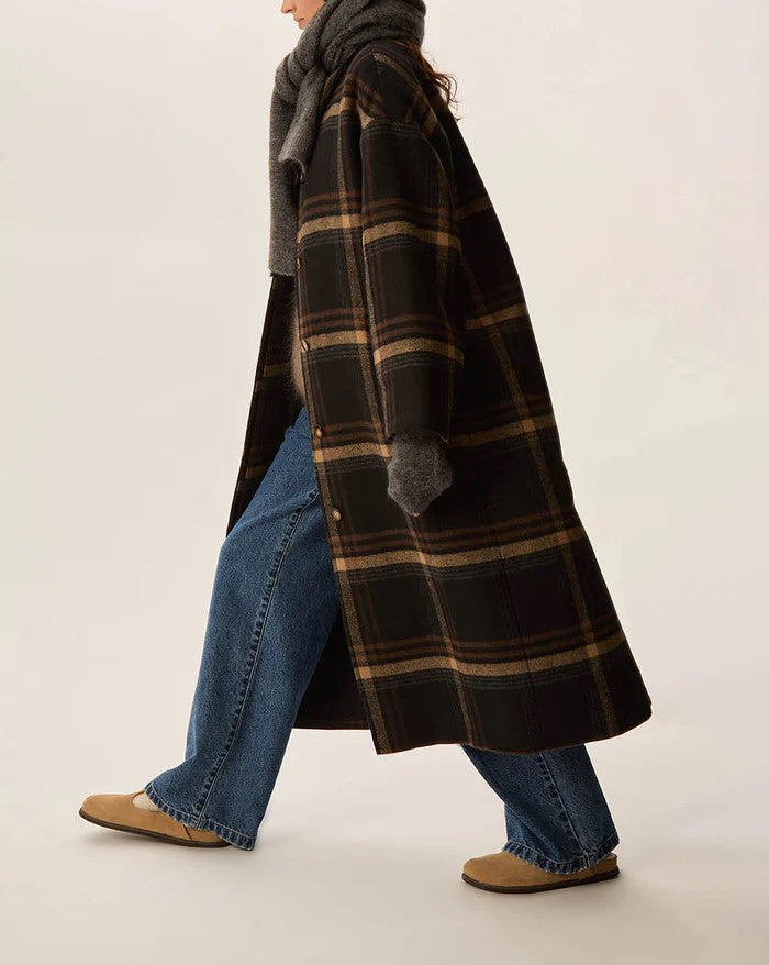 The Ysidore Coat brings bold character to cold-weather dressing. With its oversized brown checks and overcoat-inspired cut, this long, lined wool-blend piece is designed to be the statement layer of your autumn–winter wardrobe—warm, versatile, and effortlessly stylish.