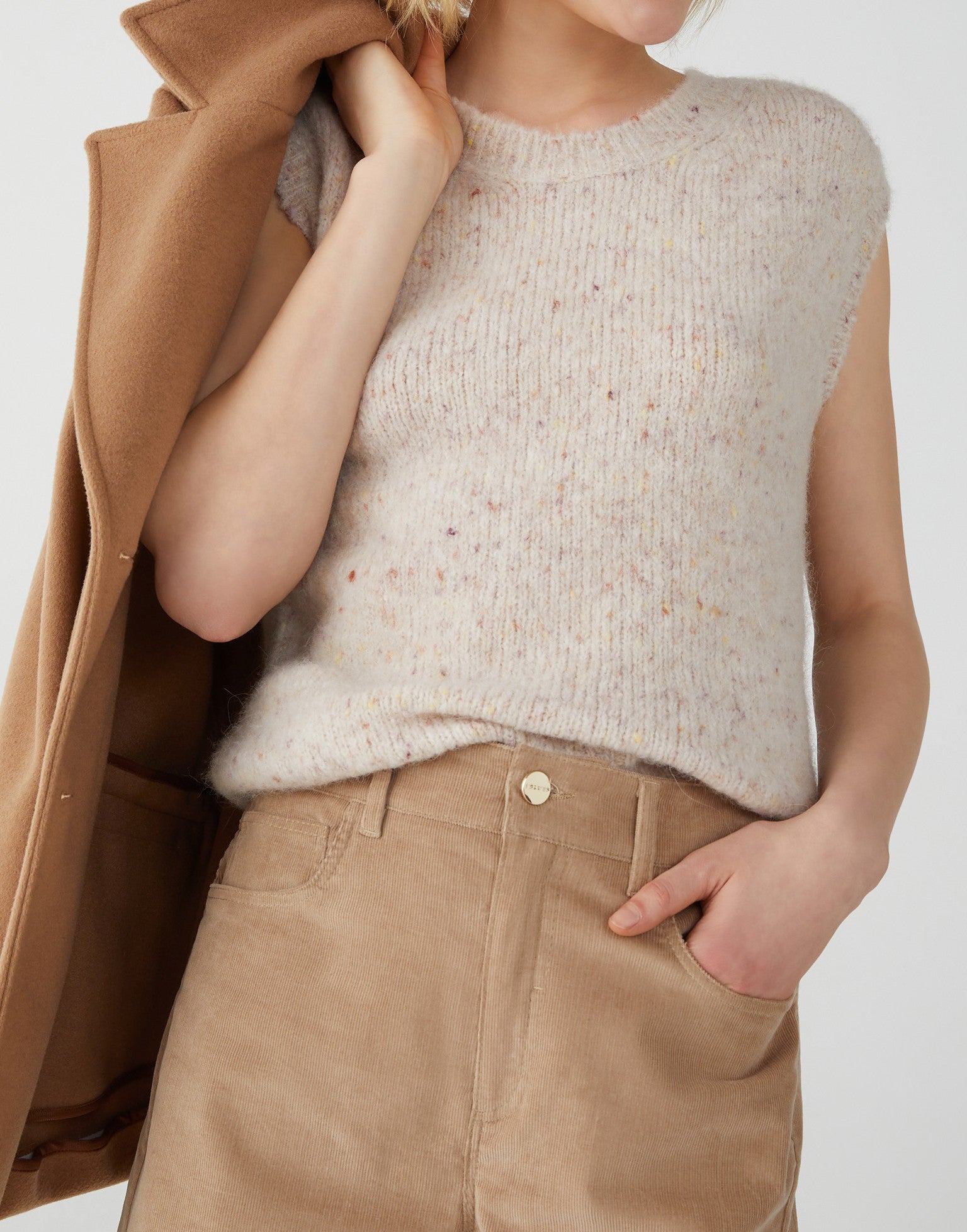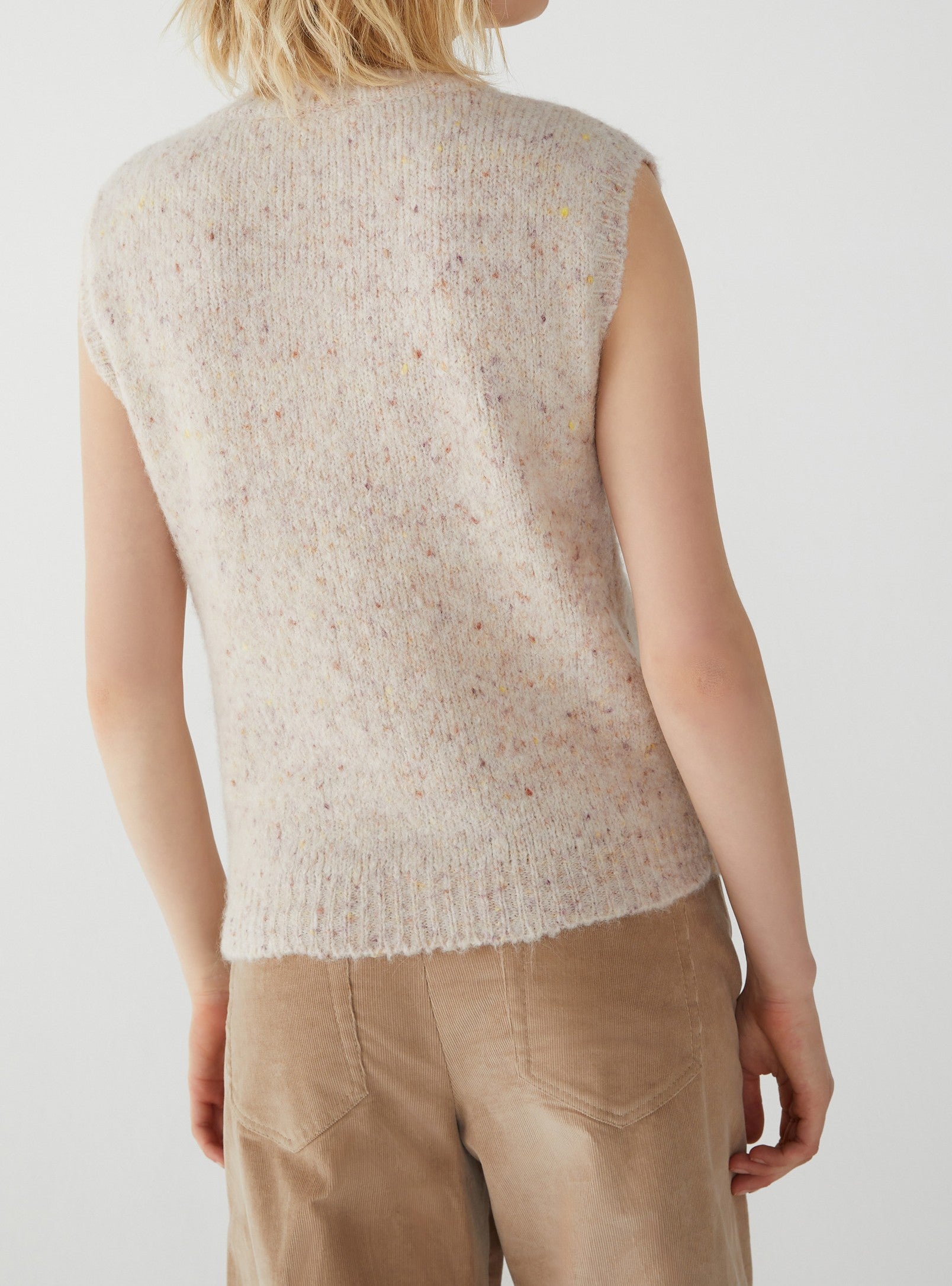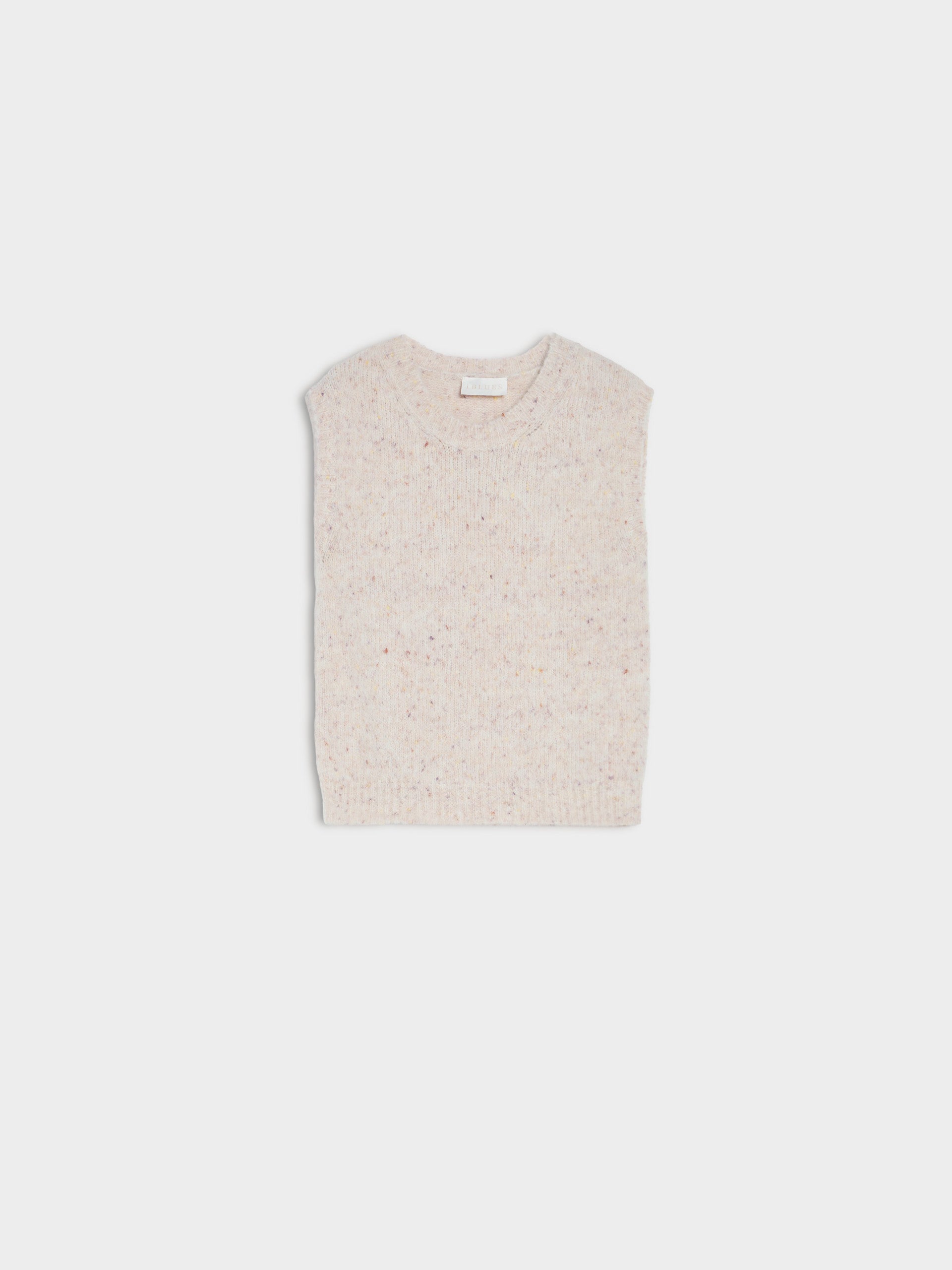 Maximize versatility with our smart layering sweater. Made from a luxurious wool and alpaca blend, this relaxed fit sweater is perfect for wearing under a blazer or on its own. The round neckline and sleeveless design add a touch of sophistication to any outfit.