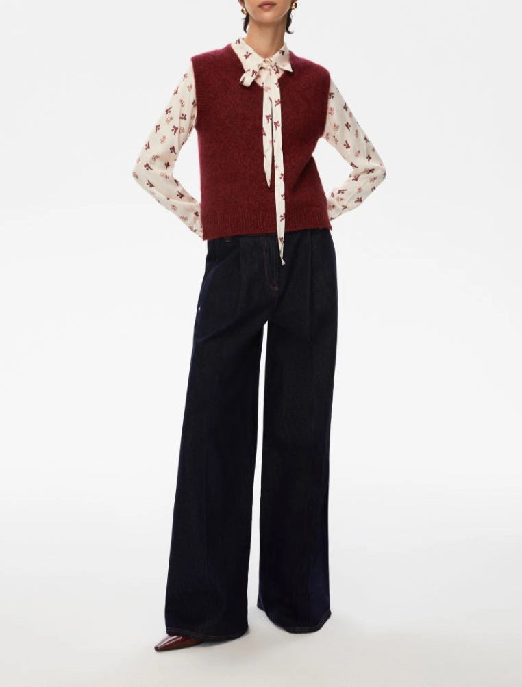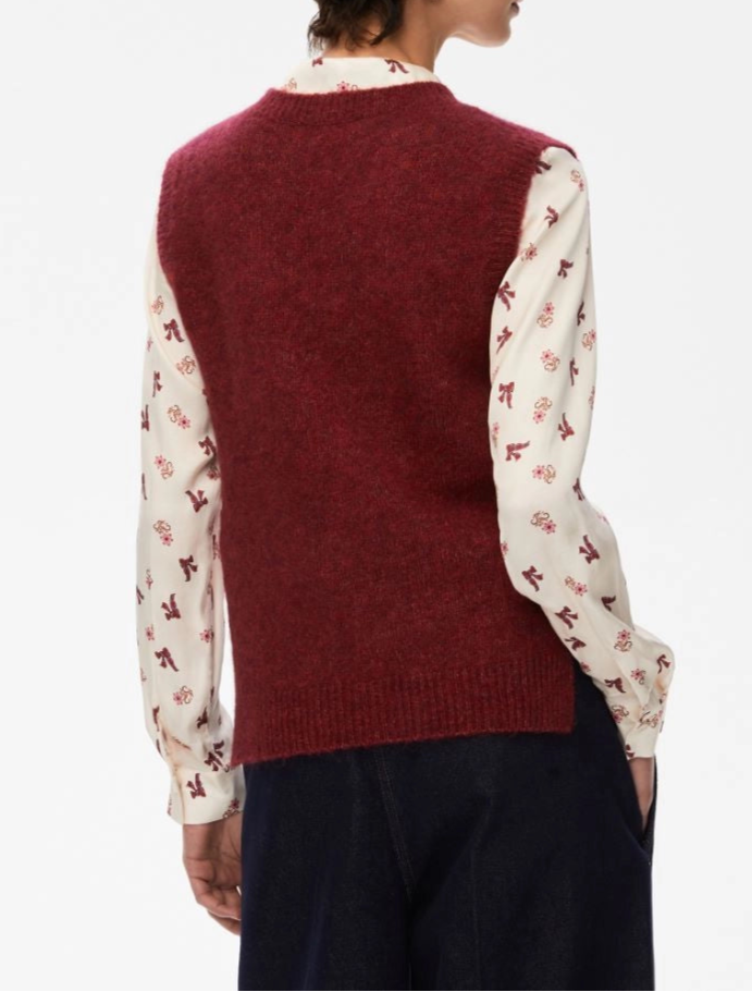 The Gabarra Gilet brings effortless layering to cooler days with its soft alpaca and wool-blend knit. Designed in a straight, relaxed fit, this sleeveless V-neck style features a high-low hem with subtle side slits for added movement and shape. Rib-knit trims finish the edges for a refined touch. Try it over a crisp shirt or light turtleneck and pair with wide, loose-fit trousers for an easy, modern look.