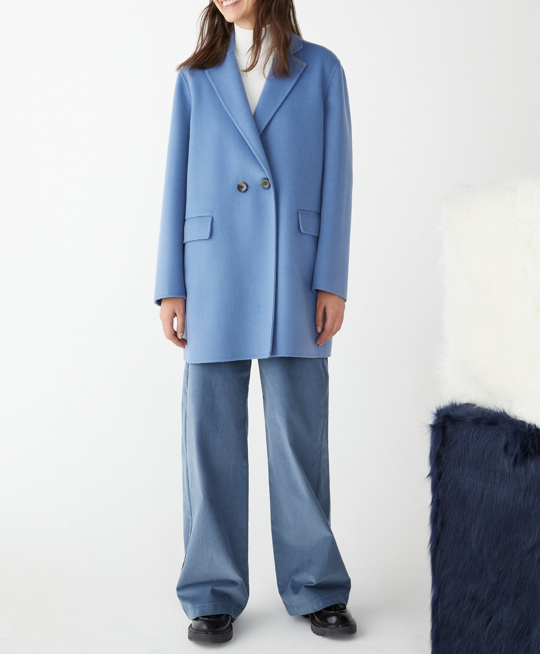 Expertly crafted from a luxurious wool-blend cloth, this double-breasted jacket adds an elegant touch to any outfit. Its relaxed egg-shaped fit, lapel collar, and flap pockets provide both style and functionality. With a button fastening, it's the perfect addition to your wardrobe for any occasion.
