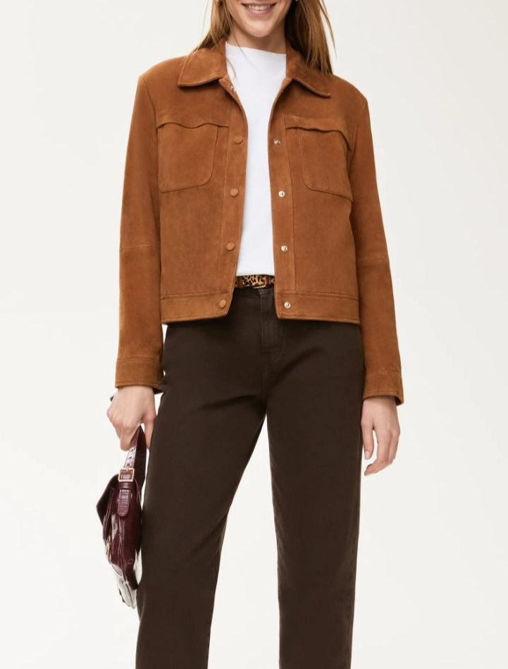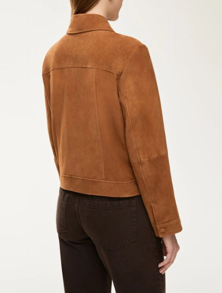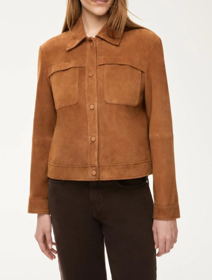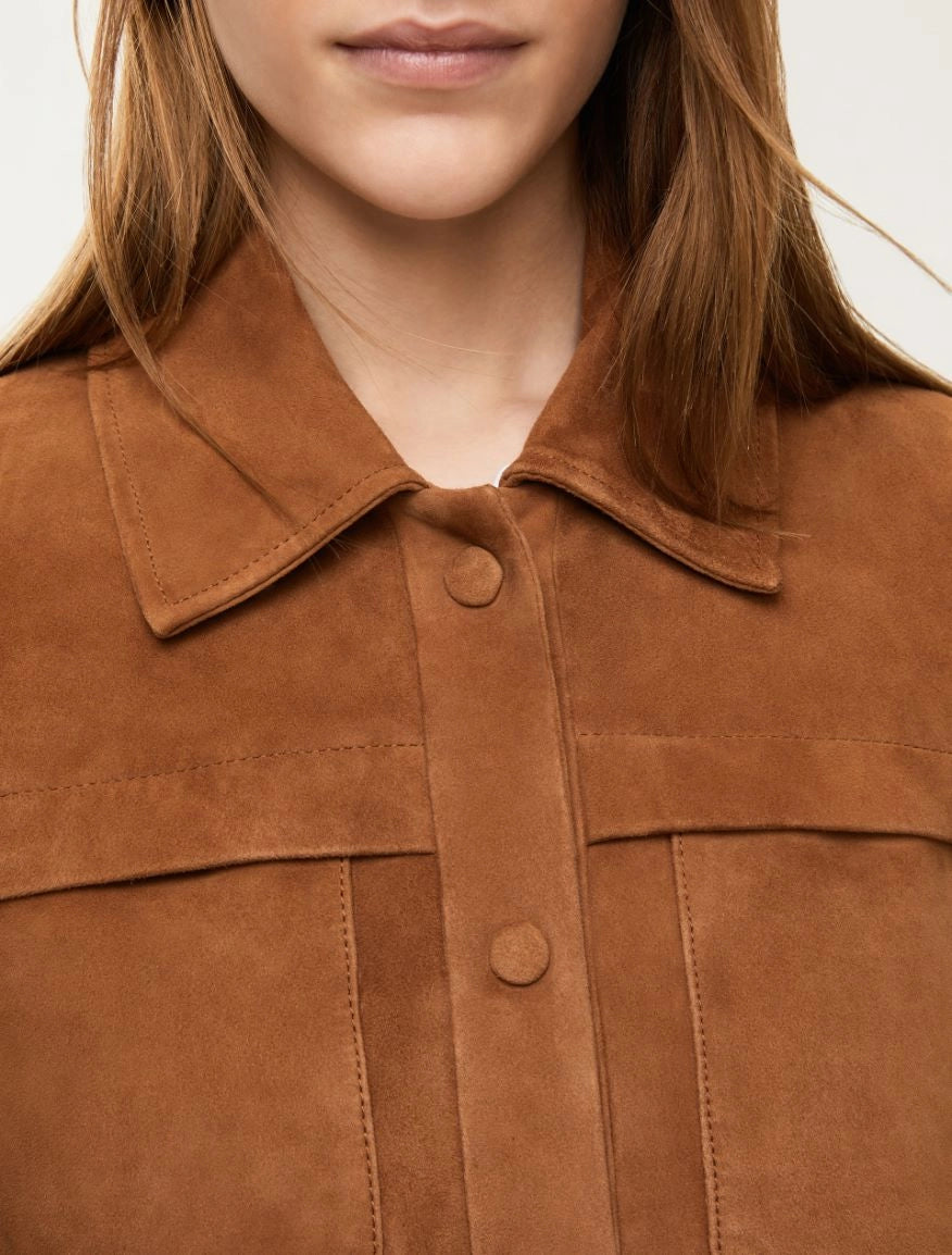 The Plava Jacket combines a sporty edge with the luxurious texture of ultra-warm suede. Crafted from soft goat leather in a structured, boxy silhouette, it features a classic shirt collar, long sleeves with press-stud cuffs, and matching leather-covered press-stud fastenings. Patch breast pockets add functional appeal, while a smooth lining ensures comfort and ease of layering. With its clean lines and eclectic spirit, the Plava is a standout outerwear piece for cooler days.