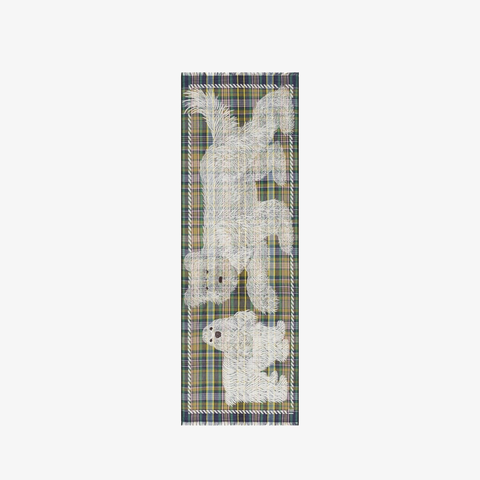 The Freddy Scarf combines playful illustration with tactile depth. Woven in a 3D jacquard technique, it creates a sculptural texture that adds warmth and presence when draped around the neck. The tartan background contrasts with the soft white bears, giving the piece both whimsy and sophistication. Thick yet fluid, it’s a statement accessory designed for everyday wear.