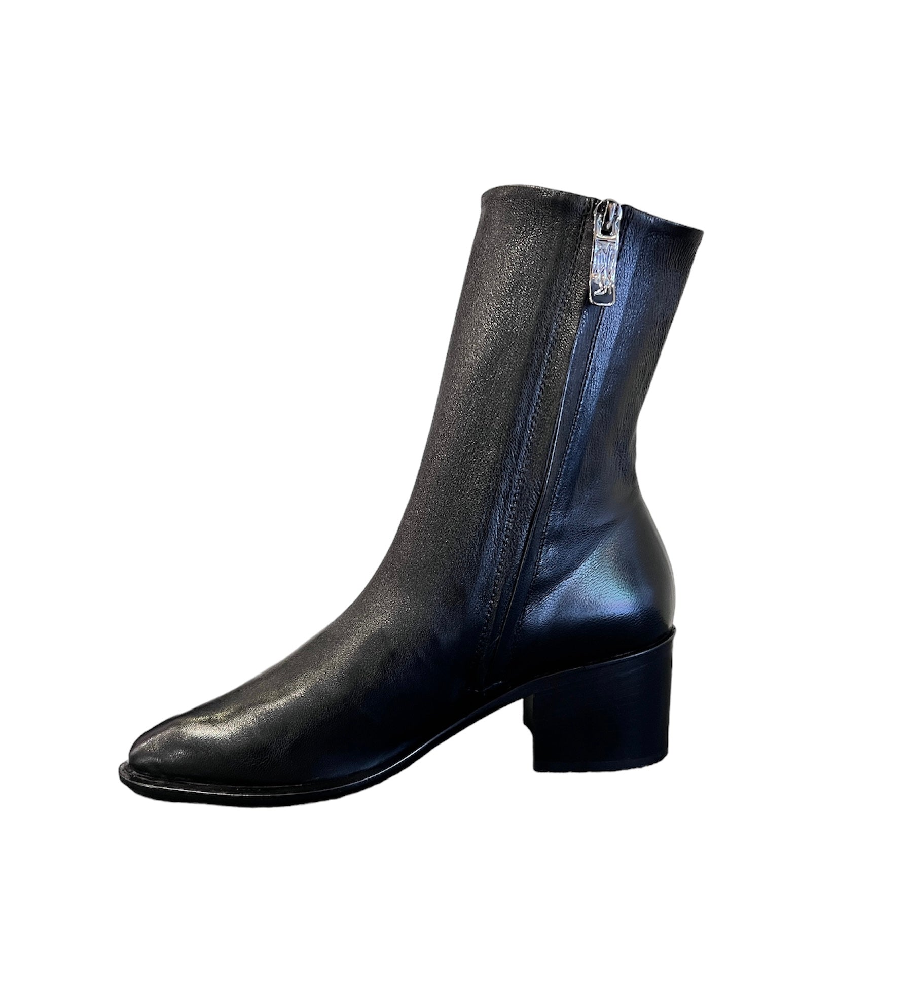 This sleek hand-made ankle boot is crafted from supple stretch nappa leather in Italy. Its stylish design includes a convenient side zip and a comfortable 5cm heel, making it perfect for casual looks.