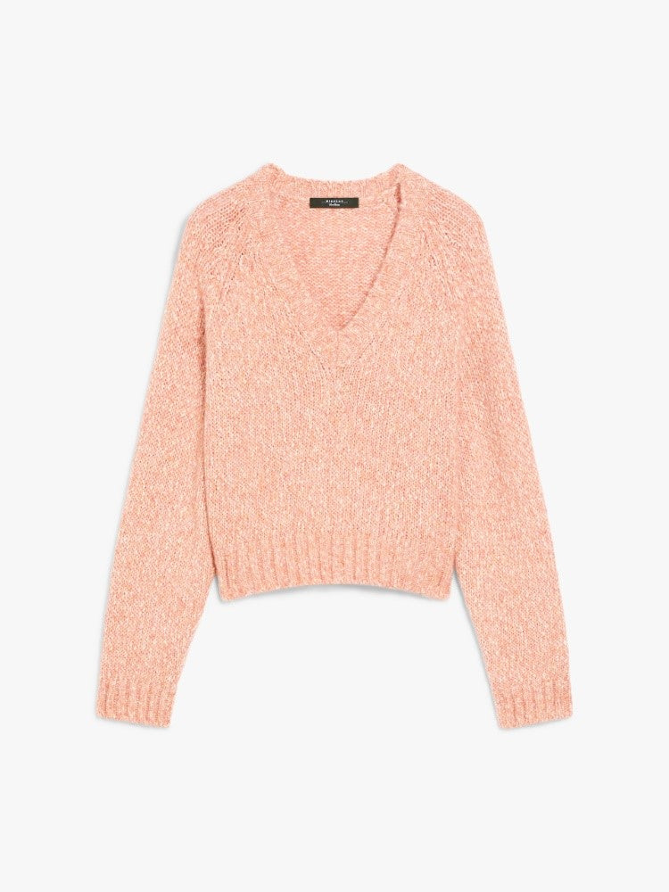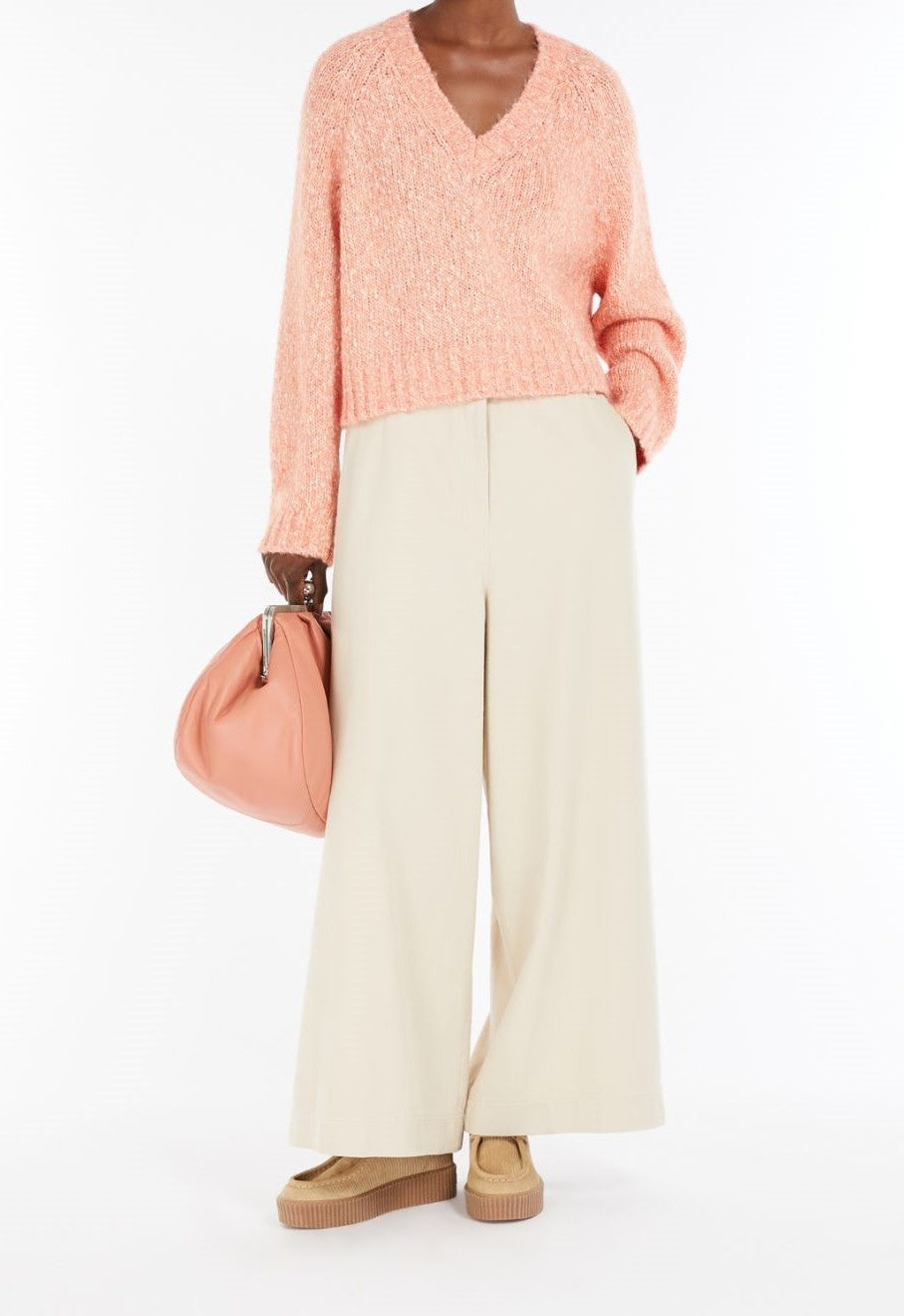 Soft and refined, this cropped V-neck sweater is crafted from a luxurious cotton and alpaca-blend fabric for ultimate comfort. Designed with a relaxed fit and long raglan sleeves, it offers effortless style and coziness. The rib-knit trims lend subtle texture and structure, making it a versatile staple for any wardrobe.