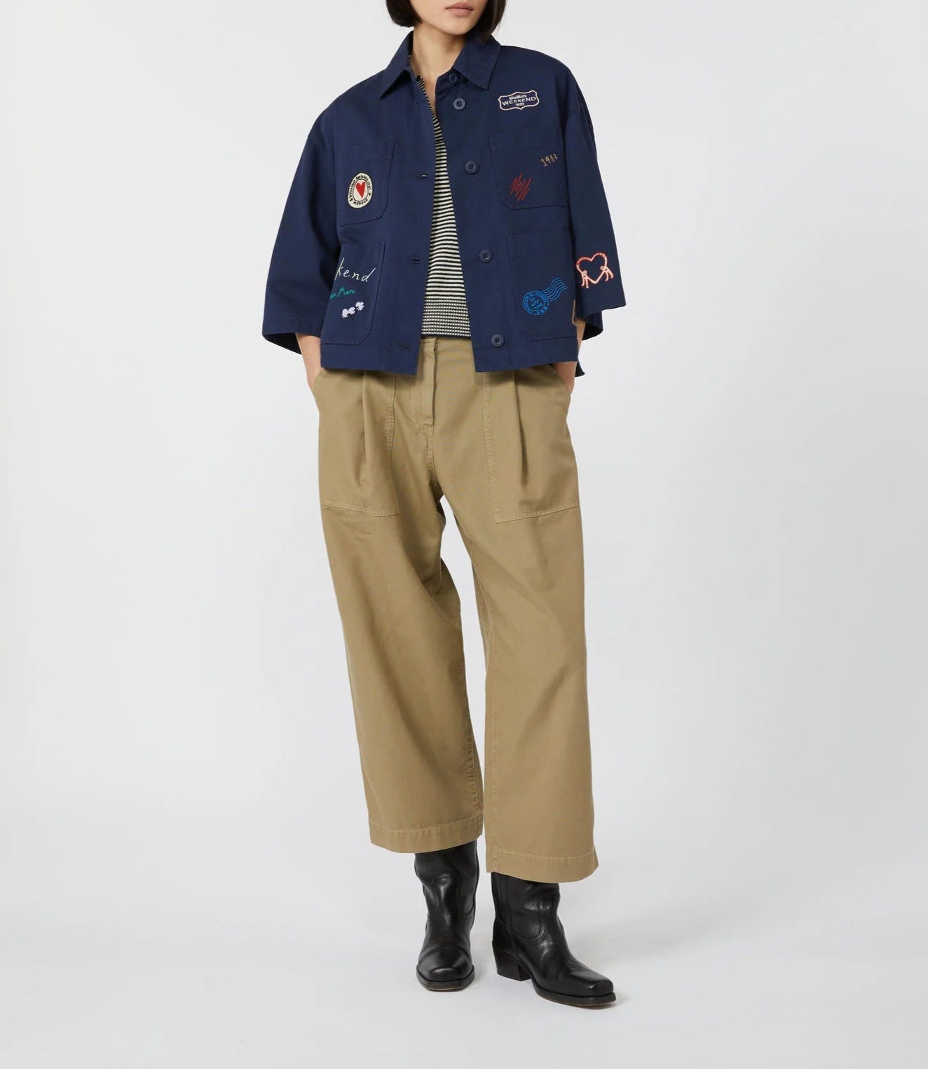 The Assuan Jacket brings together casual refinement and thoughtful detailing. Crafted from garment-washed pure cotton canvas, this relaxed outer layer is shaped with a boxy silhouette, dropped shoulders, and elbow-length sleeves for an effortlessly modern fit. A pointed collar and visible button closure nod to classic workwear, while delicate embroidery and four front patch pockets lend a distinctive, utilitarian charm. Finished with a darted back yoke and side slits for ease of movement, this breathable unlined jacket is ideal for transitional layering.