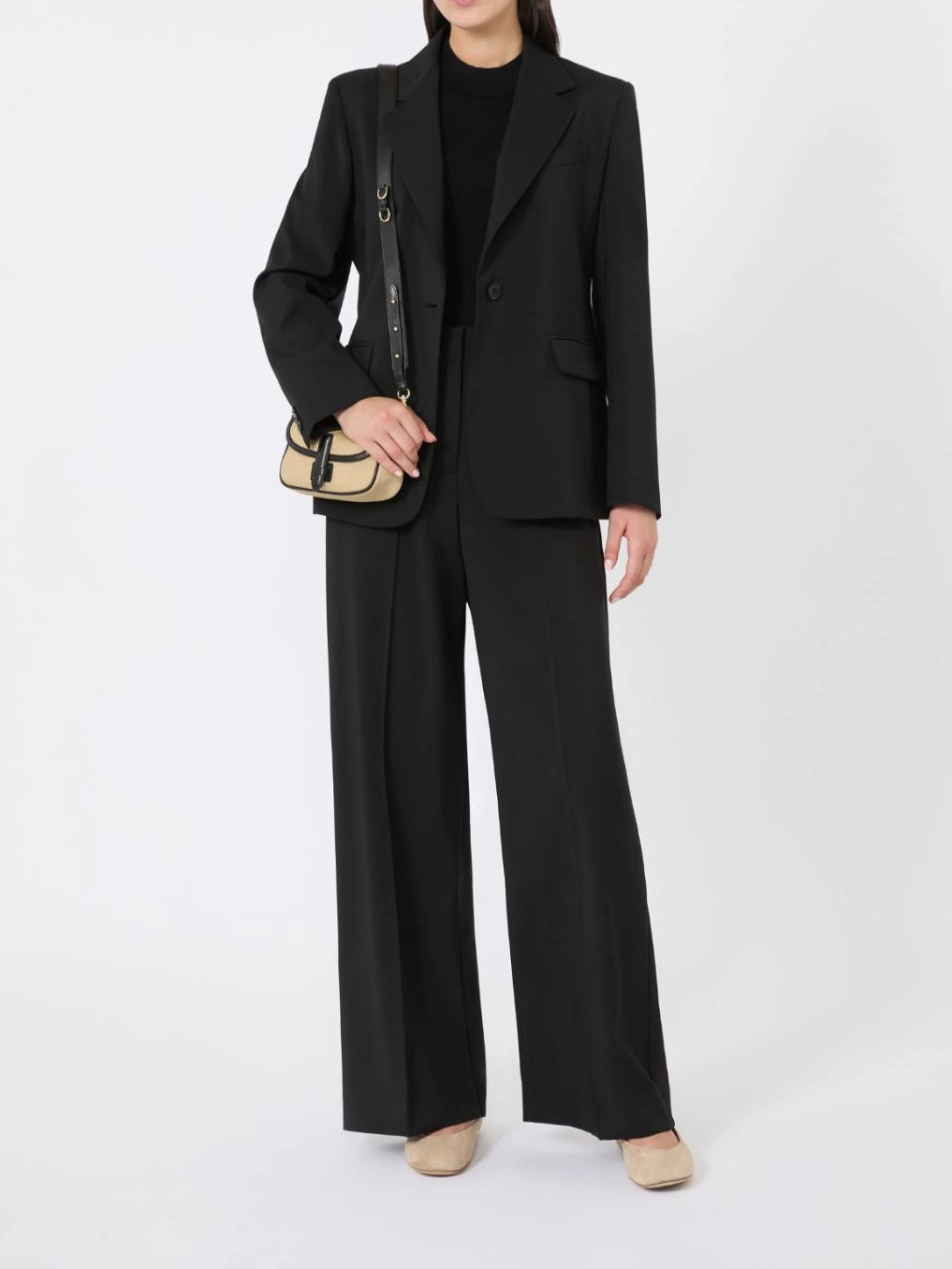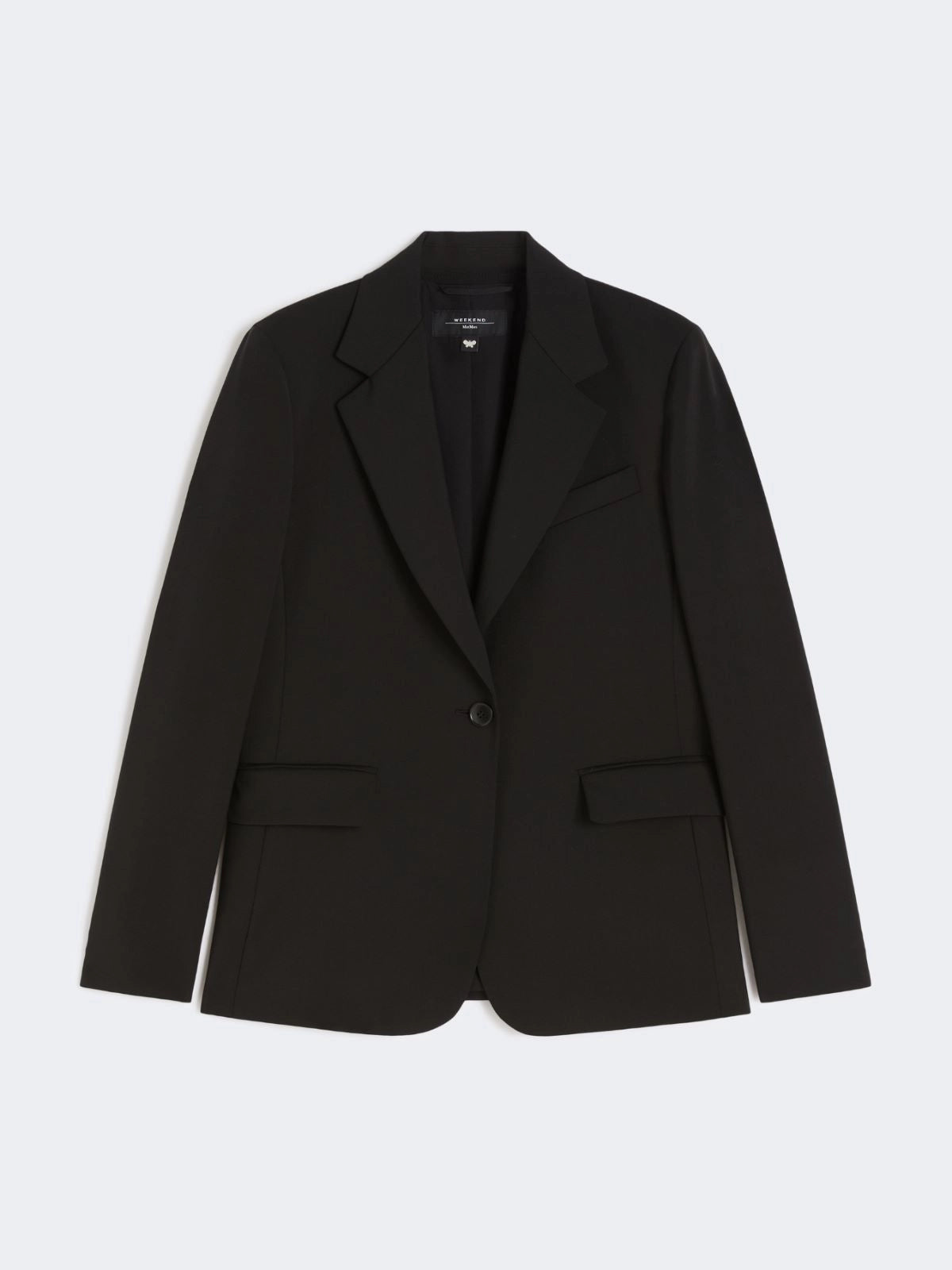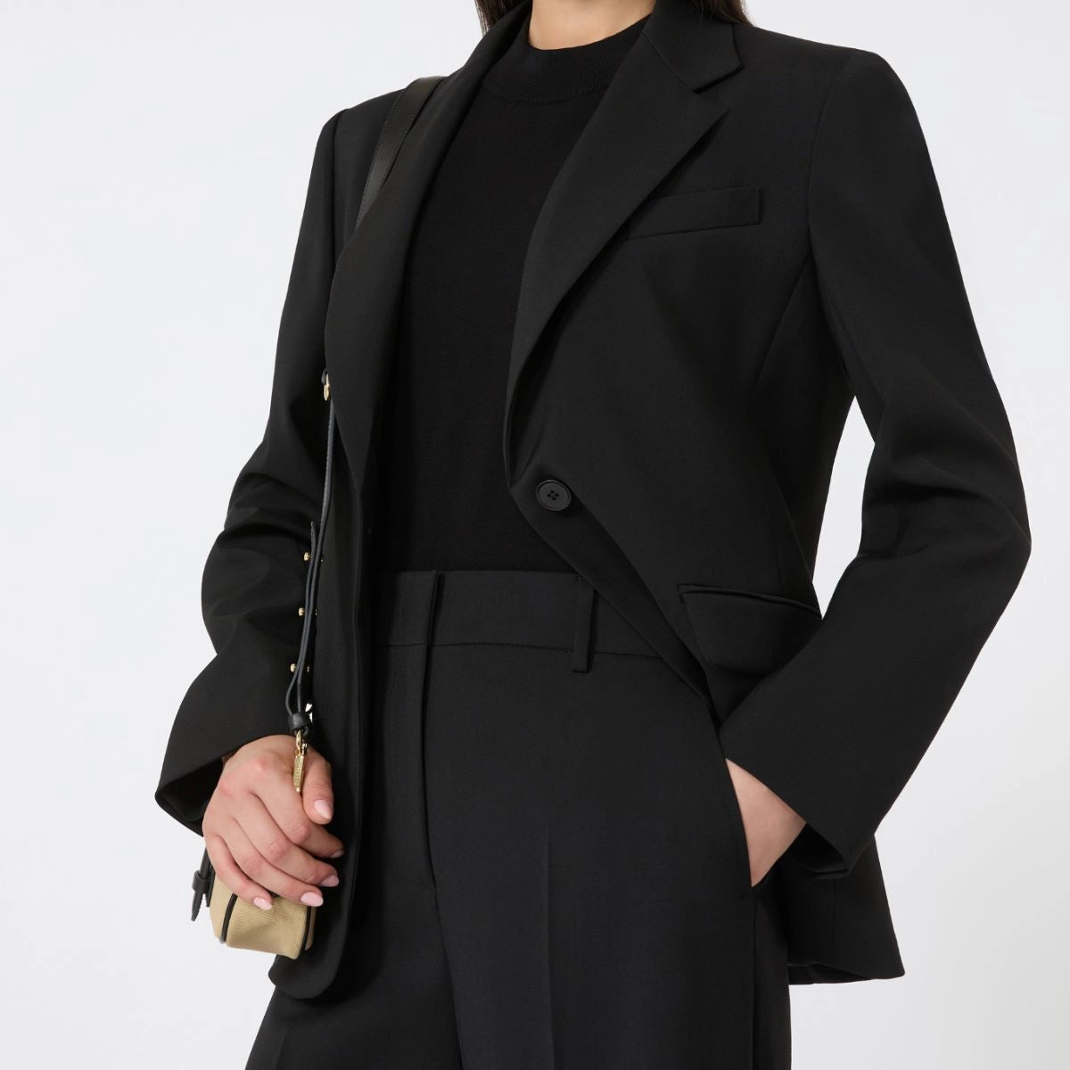 Timeless tailoring meets modern refinement in this Single-Breasted Blazer. Cut from natural stretch virgin wool, it offers a smooth, figure-skimming fit enhanced by classic structured detailing. The lapel collar and one-button fastening create a clean, streamlined silhouette, while flap front pockets and a breast pocket add traditional polish. Finished with a rear vent for ease of movement and fully lined for a comfortable fit, this blazer transitions effortlessly from office to occasion.