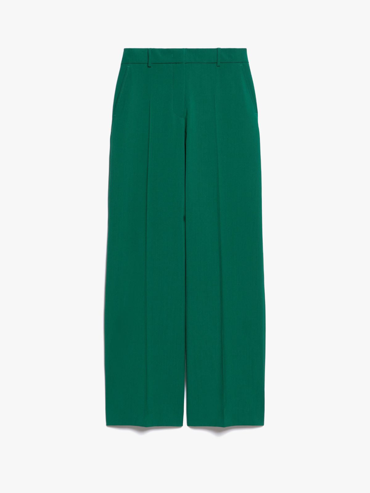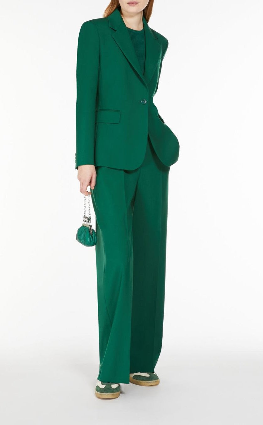Expertly crafted from lightweight stretch wool, these wide-leg palazzo trousers exude elegance and sophistication. The high waistband and pressed pleat detail create a flattering silhouette, while the slant side pockets and buttoned welt rear pockets provide functionality. Complete with a secure fly-covered zip and hook-and-bar fastening.