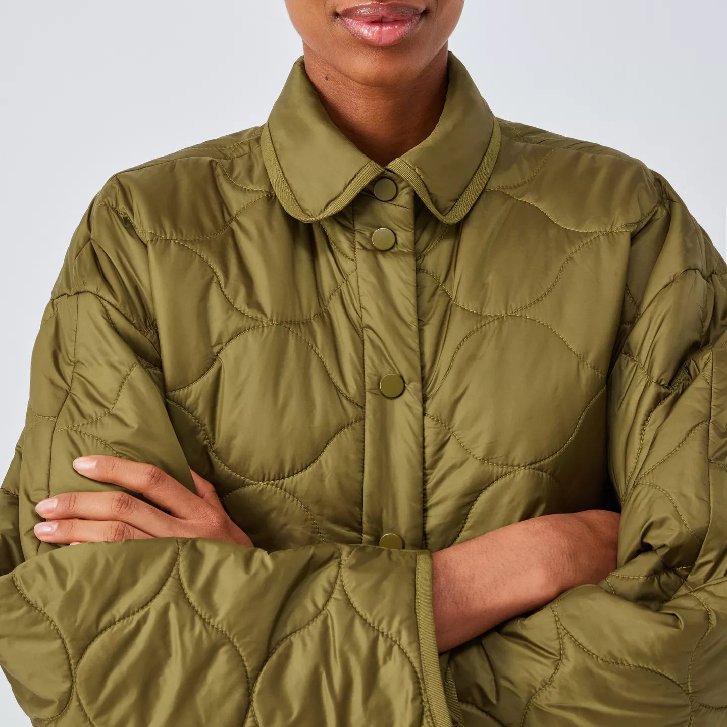 Conscious craftsmanship meets outerwear innovation in MM Max Mara’s Zante Quilted Jacket. Known for material excellence, the brand brings sustainable thinking to the forefront with Luxepad—an advanced insulation made from recovered camel-silk fabric scraps, blended with synthetics to deliver warmth with reduced environmental impact. The lightweight quilted design is shaped with a classic collar, long sleeves, and a press-stud fastening, while front slip pockets add everyday practicality. A modern layer with a timeless mindset.
