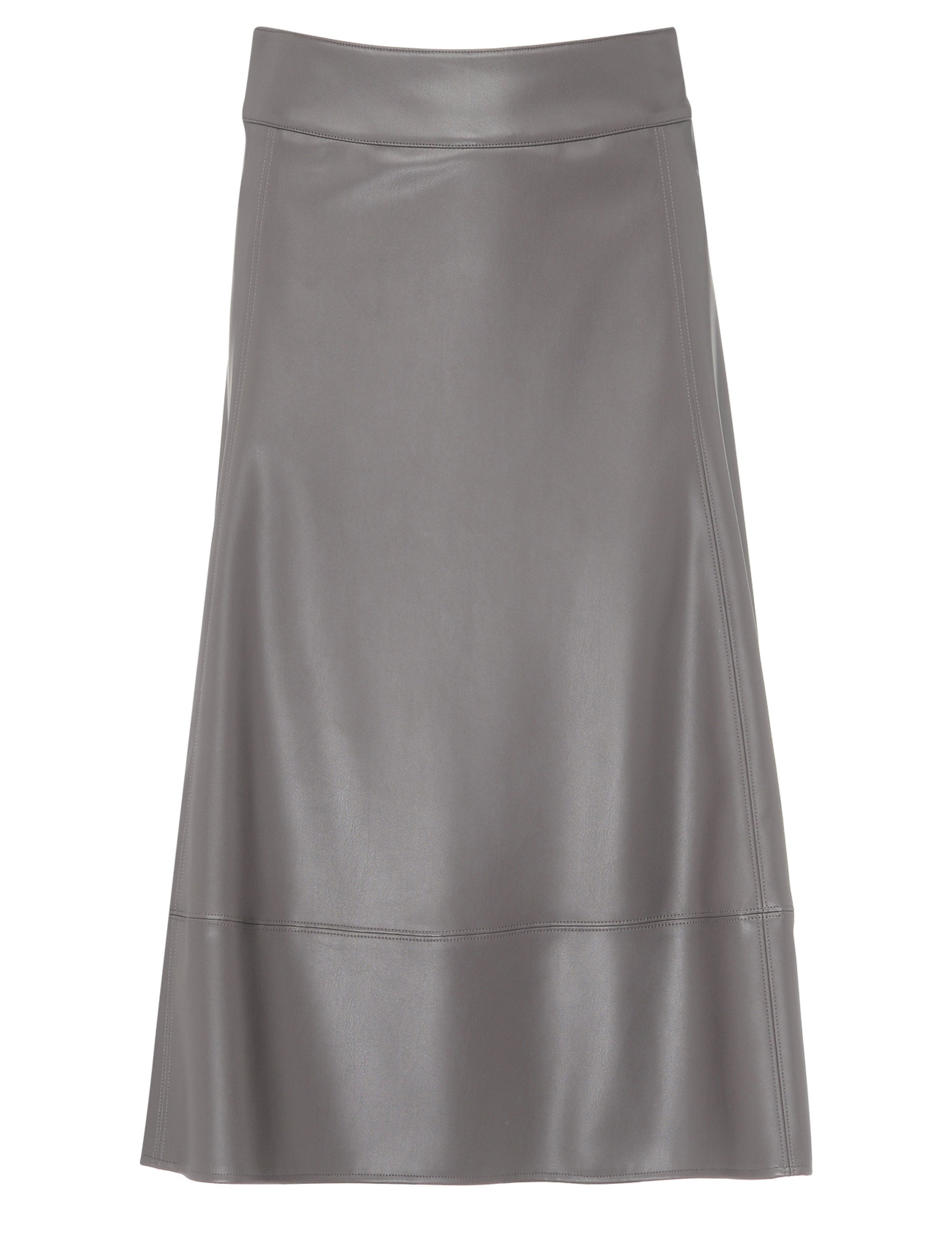 Max Mara MM model Marzia skirt made of gray leather-effect coated jersey. Features exposed tone-on-tone topstitching.