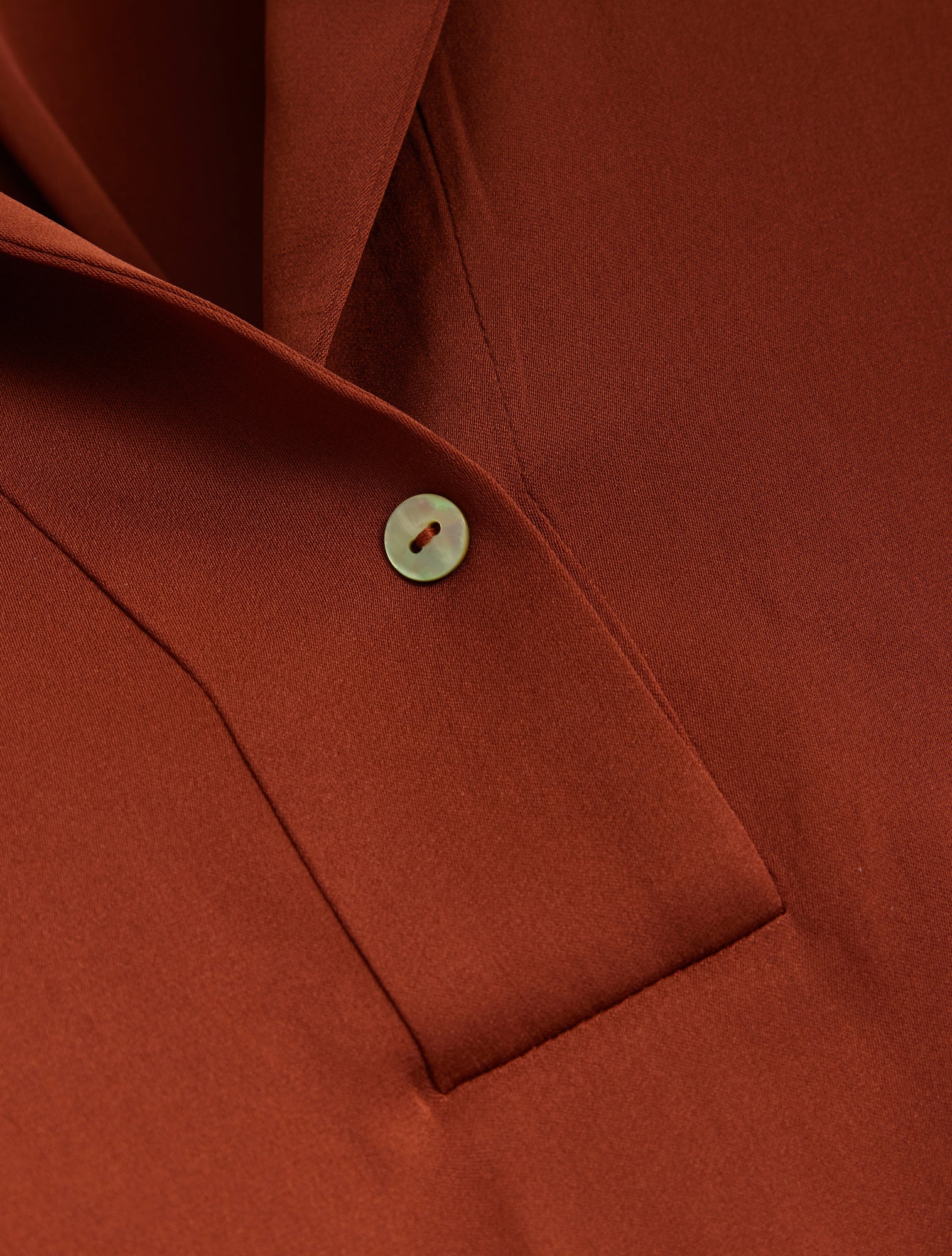 The Bay Blouse is an elegant essential, crafted from silk with a touch of stretch for fluid movement and comfort. Designed with a soft collar, single-button placket, and long sleeves with wide cuffs, it drapes with effortless sophistication. Flexible enough to move with your body while retaining its shape, it is washable, quick drying, and long lasting — an everyday-luxury piece designed to be worn over and over again. Available in Truffle, Midnight Blue, Emerald Green, and Dark Ruby.
