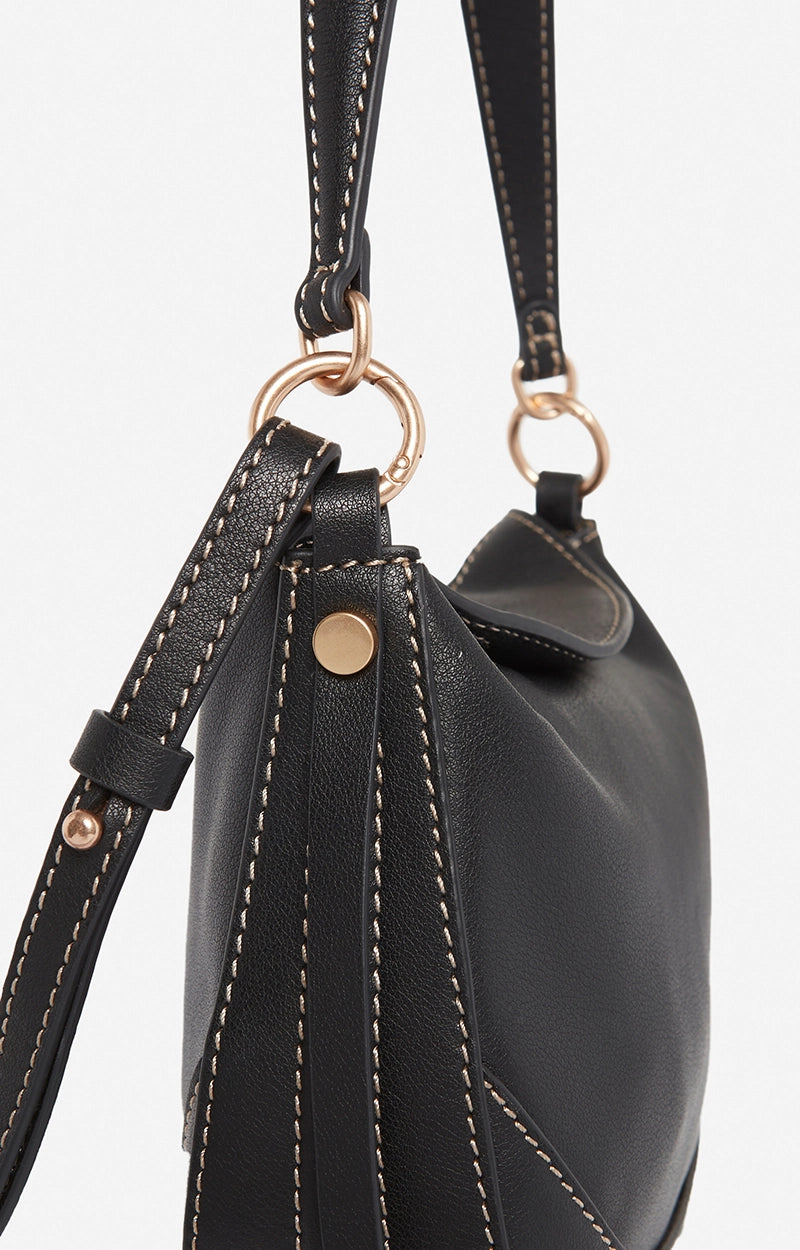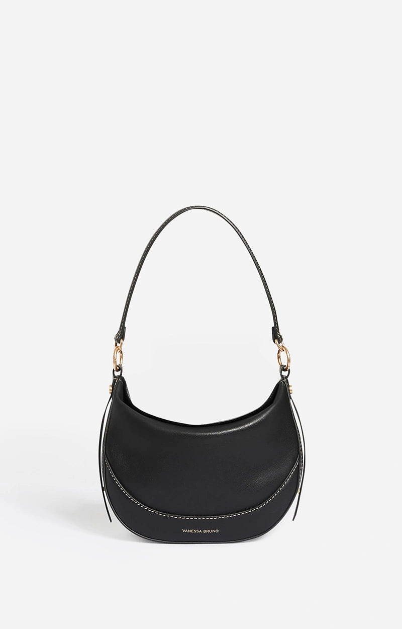 The Daily Bag blends softness and structure in an elegant half-moon silhouette—designed to elevate everyday wear. Crafted in smooth leather with gold-tone accents, its refined shape is accentuated by curved stitching and a sleek, magnetic flap closure. A lightweight, compact piece for daily life, it adapts to your needs with an adjustable shoulder strap and detachable short handle—carry it by hand, cross-body, or on the shoulder.